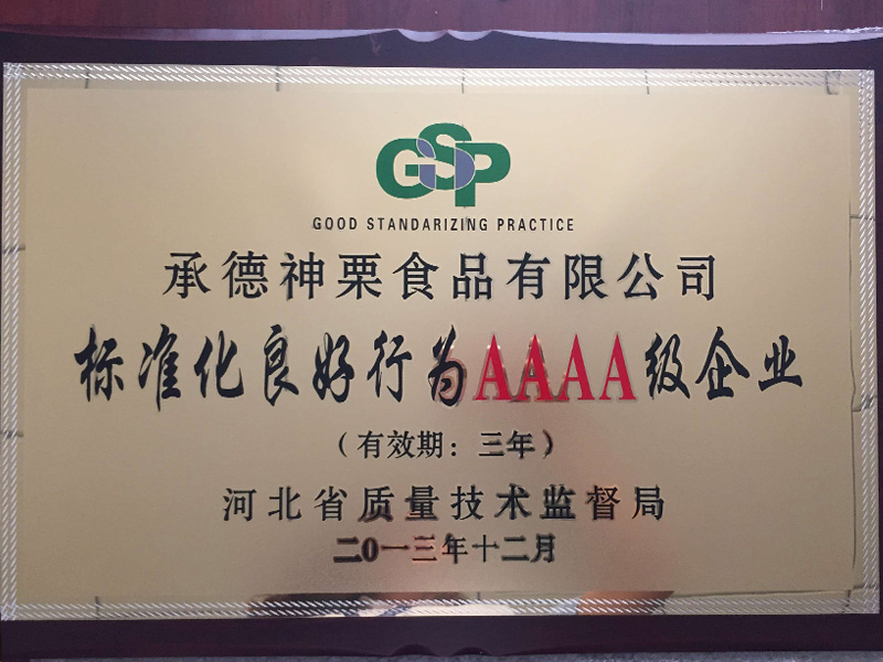 14、2013年12月神栗公司被河北省質(zhì)量技術(shù)監(jiān)督局評為:標(biāo)準(zhǔn)化良好行為AAAA級企業(yè)。