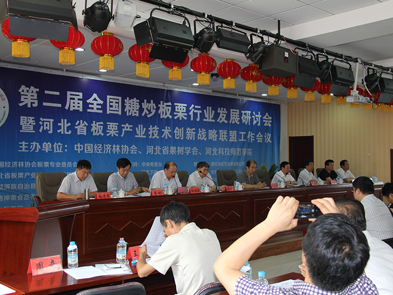 7月11日,由中國經(jīng)濟(jì)林協(xié)會、河北省果樹學(xué)會、河北科技師范學(xué)院共同主辦,中國經(jīng)濟(jì)林協(xié)會板栗分會、河北省板栗產(chǎn)業(yè)技術(shù)創(chuàng)新戰(zhàn)略聯(lián)盟、寬城滿族自治縣人民政府、承德神栗食品有限公司、燕山板栗網(wǎng)聯(lián)合承辦的“第二屆全國糖炒板栗行業(yè)發(fā)展研討會”在河北寬城承德神栗食品有限公司隆重召開。